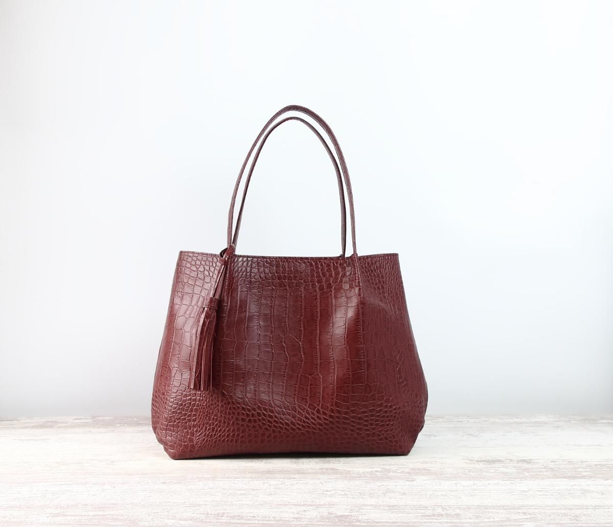 クロコダイル型押しの牛革です。
