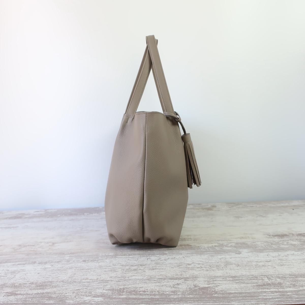 仕様 | 内装の仕様:オープンポケット×1,ファスナーポケット×1 タッセルチャーム付、底板&底鋲付き made in JAPAN |